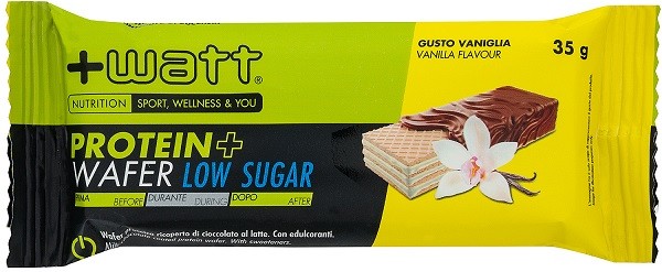 Protein+ Wafer Low Sugar Vaniglia, lo snack proteico al gusto vaniglia ricoperto di cioccolato a basso contenuto di zuccheri