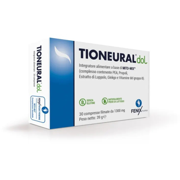 Tioneural Dol è un integratore alimentare in compresse studiato per il benessere del sistema nervoso e la funzionalità articolare. Grazie alla presenza di Palmitoiletanolamide (PEA), Acido alfa-lipoico, Bromelina, Boswellia serrata e Vitamine del gruppo B, contribuisce a: