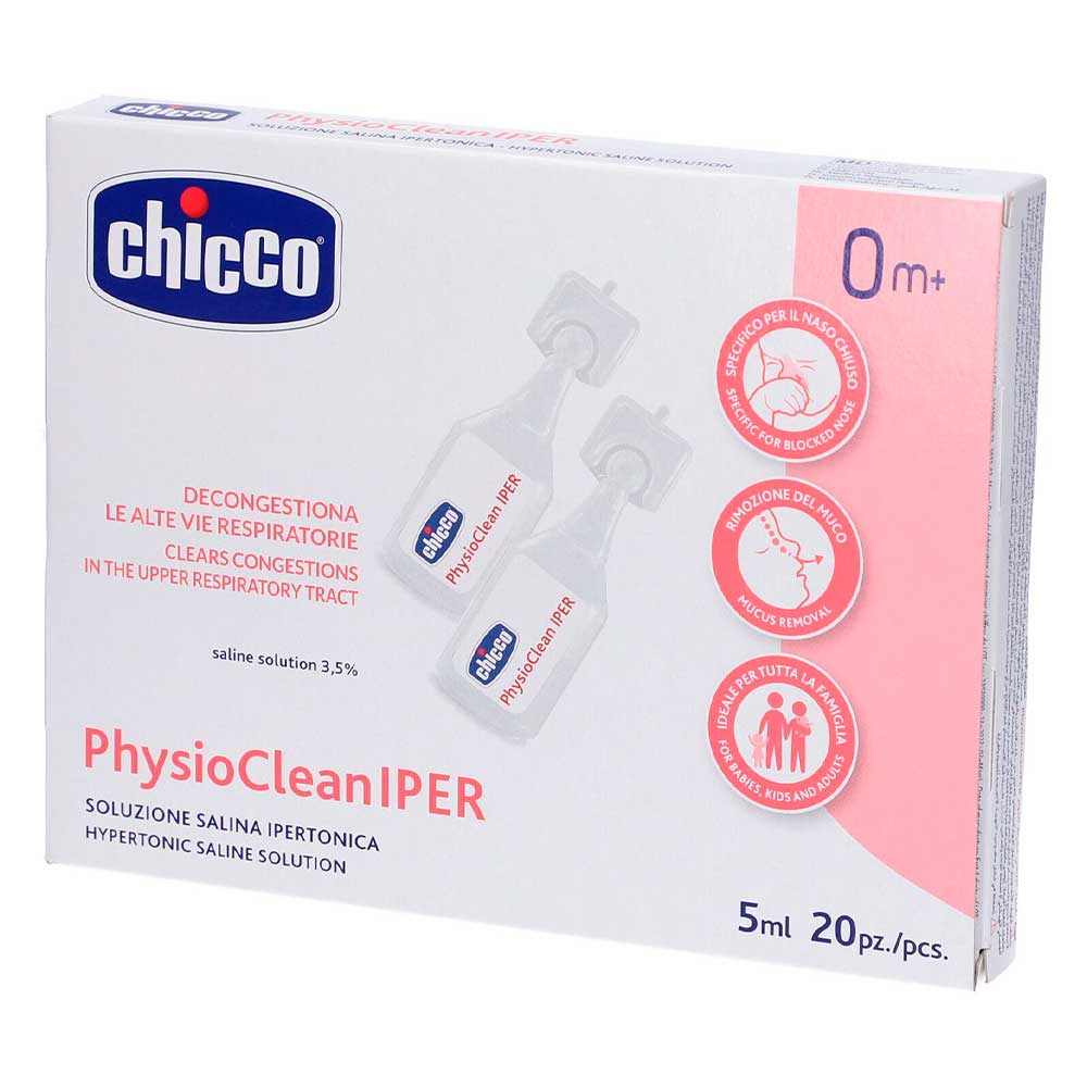 PhysioClean Iper Soluzione Salina Ipertonica è un dispositivo medico indicato per il lavaggio e la detersione delle cavità nasali, particolarmente utile in caso di raffreddore, rinite e sinusite. La sua formulazione, a base di cloruro di sodio 2,5%, bicarbonato di sodio e fosfato monosodico, esercita una funzione osmotica che favorisce l’eliminazione del muco in eccesso e delle particelle allergeniche, aiutando a ridurre la congestione delle alte vie respiratorie. Studiata in pratici flaconcini monodose, questa soluzione risulta facile da applicare e particolarmente adatta sia per bambini che per adulti. Il prodotto contribuisce a mantenere le cavità nasali pulite, agevolando la respirazione, e costituisce un valido supporto nelle fasi acute di infezioni respiratorie o in presenza di allergie stagionali. Il trattamento può essere integrato nella routine quotidiana per la salute delle vie respiratorie, anche nei più piccoli, sotto indicazione del medico. Non contiene farmaci o conservanti: si basa esclusivamente su elementi salini e acqua purificata, garantendo elevata tollerabilità e sicurezza.